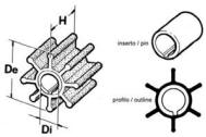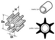 | CM00122 | Girante per entrobordo e pompe acqua. Riferimento CEF 127. Girante con 6 palette in neoprene. Dimensioni da figura: De: 51 mm; H: 22 mm; Di: 10 mm |